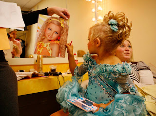 Vamos chafurdar no mundozinho dos concursos "Miss qualquer coisa" onde as concorrentes de 5 a 10 anos, motivadas pelas cabecinhas vazias das suas mamãs, sofrem com toda a pressão e aprendem desde essa tenra idade, enquanto deviam estar ocupadas com brincadeiras educativas, a lidar com esse mundo fútil das extensões, unhas de gel e afins...